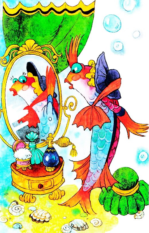 Когда Каролина подросла и превратилась в молодую рыбку с прозрачным золотистым хвостиком, коралловыми перышками, маленьким ротиком и большими изумрудными глазами, то увидели, что она просто красавица.