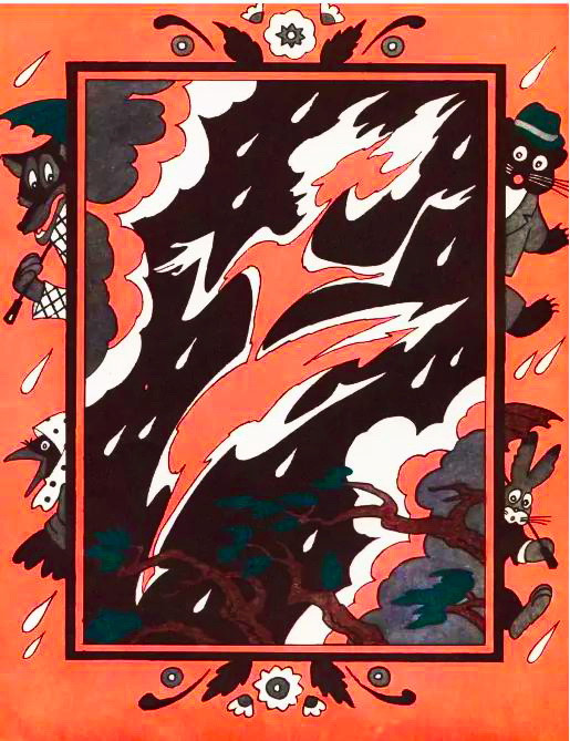 Маленький Ослик замолчал, просунул голову между веток и увидел всех: и Кузнечика, и Ежа, и знакомых птиц, и самого Старого Жука, который сердито поводил усами. Все они сидели на лужайке — кто на ветках кустов, кто на пенёчке, кто просто на траве. И вид у них всех был какой-то странный. Они ничем не занимались, ни во что не играли, ни о чём не беседовали. Сидели тихо, подняв глаза к небу, а то и вовсе закрыв их.
