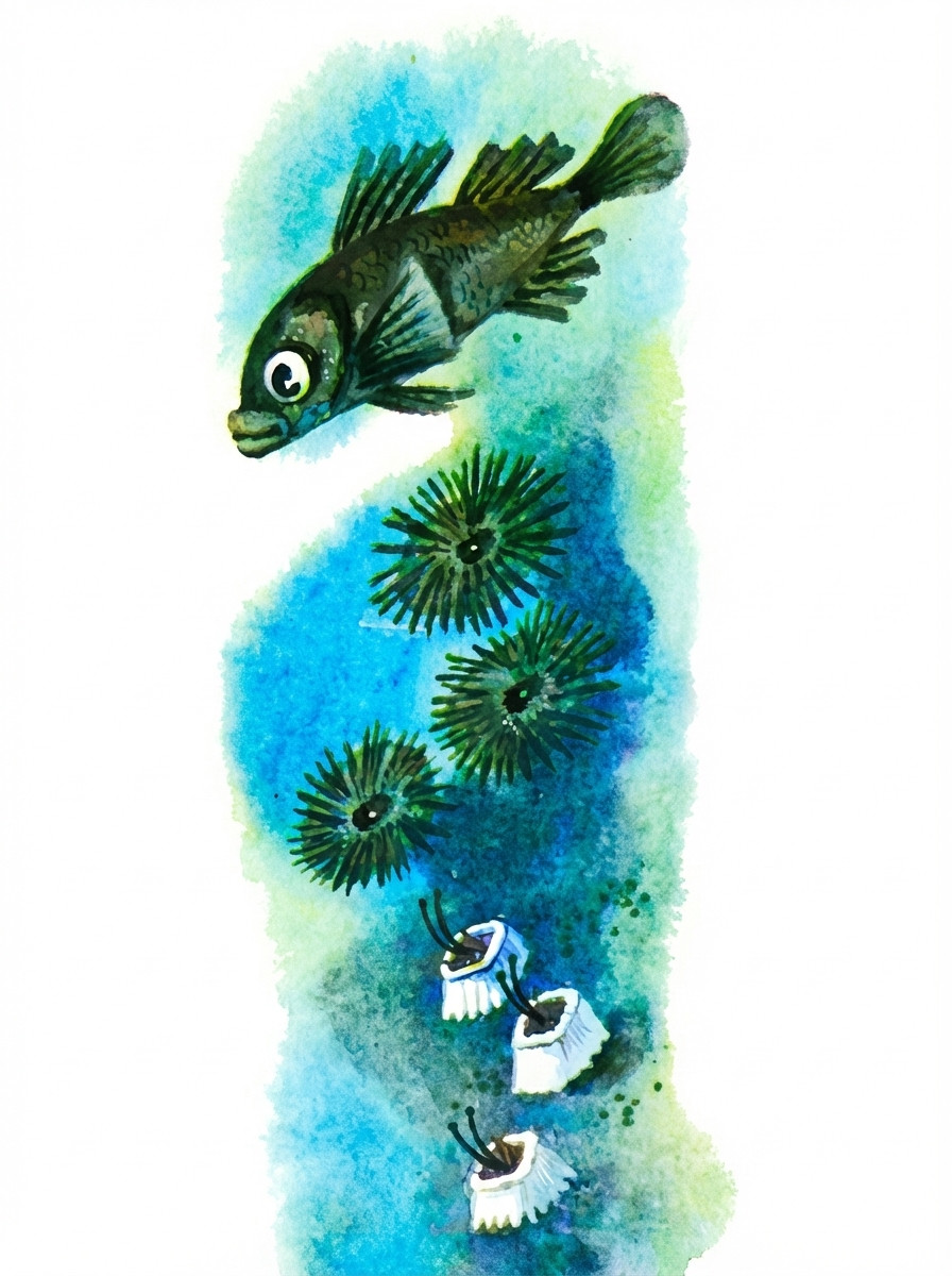 У ласкиря, морского карася, врагов в море — не сосчитать. Вечно он взад-вперёд носится, от чьих-нибудь зубов спасается.
