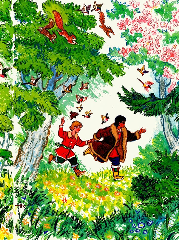 С криком вскочили волшебники, но не могли сдвинуться с места. Стоят и растут, растут. Вот превратились они во взрослых людей, вот седые волосы заблестели у них на висках, покрылись морщинами щёки.