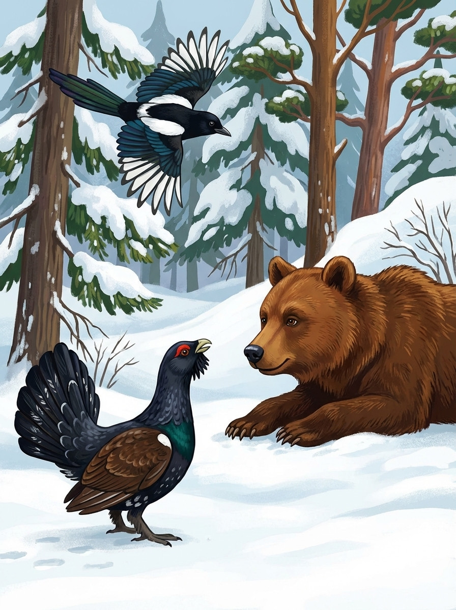 Задумались Синица, Сойка и Дрозд. Увидела их Кукушка, подлетела из любопытства.