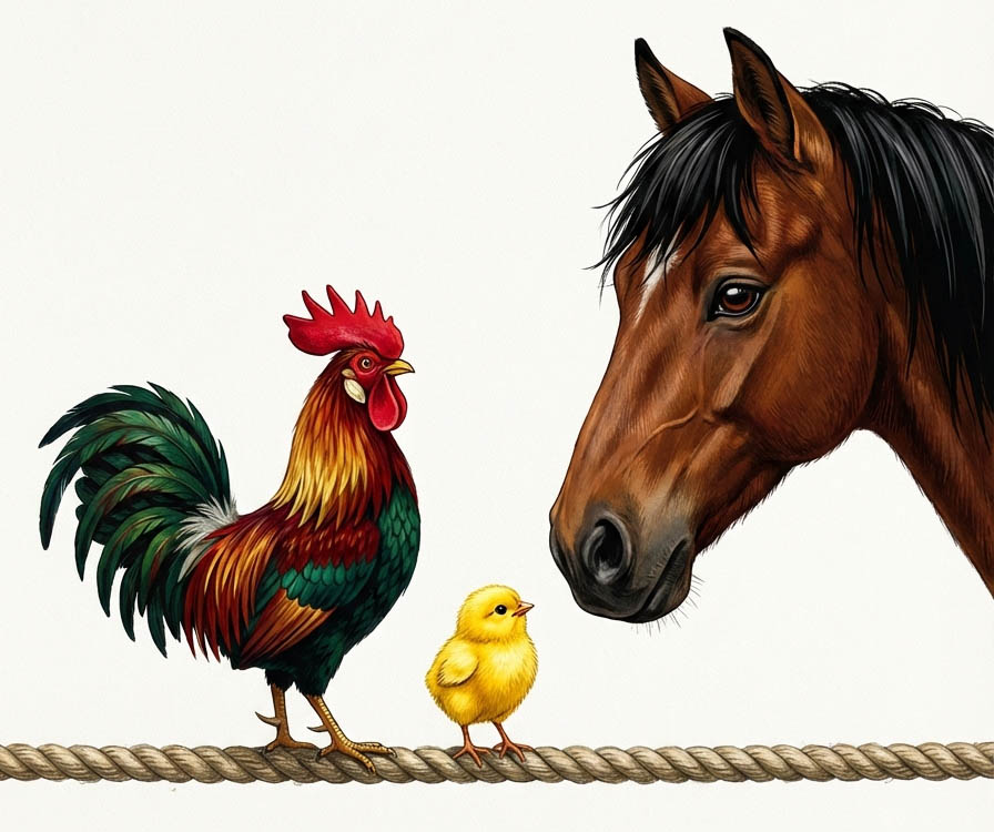 Пошёл на базар и купил петуха. Сел на него верхом-домой ехать, а петух вдруг как вырвется да как загорланит: