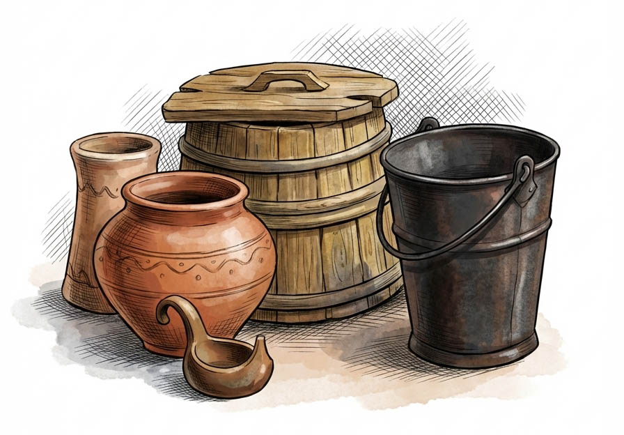 Пожала бабка плечами — стала ждать. А вода не идёт. Стала бабка деда ругать. Вдруг проливной дождь как польёт, как забарабанит — полнёхоньки стали все бочки, плошки, кадки да горшки.