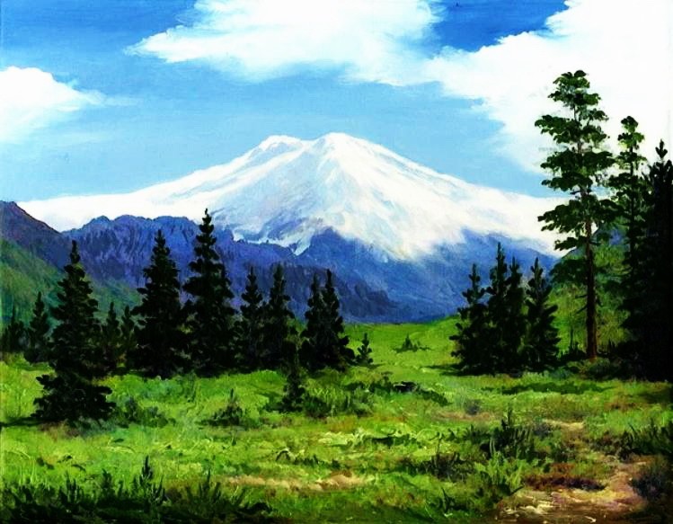 С вершины было видно вокруг на сотни верст. Это была оплошная зеленая долина, расстилавшаяся до самого горизонта, и мелкие горы на ней — Машук, Железная, Змеевка — казались отсюда копнами сена, разбросанными по степи. Вдалеке, на горизонте, виднелась снеговая цепь кавказских гор е Эльбрусом и Казбеком, похожая на гряду далеких серых облаков. Кое-где в окружности светились озера, и словно белая нитка, извивалась по зелени какая-то речка, должно быть Подкумок; а в стороне над самой чертою земли висела бледная луна, без лучей, угрюмая и усталая»