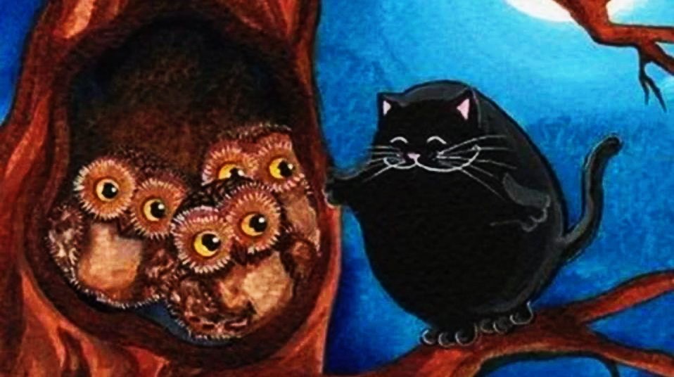 Кот спросонок не разобрал и пустил сову. Легли они в дупле рядышком. Сова и говорит:
