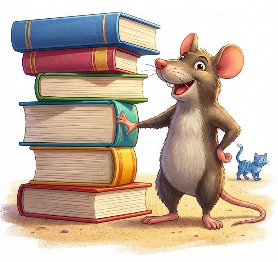В одной библиотеке жила грамотная мышка по имени Нюра. Она не пропускала ни одной новой книжки, ни даже самой что ни на есть скучной газеты… И всё из-за кошек! — уж очень она любила их есть. Увидит на картинке кошку — цап! — и тут же слопает, увидит другую — хруп! — и готово. А потом выйдет на крыльцо и говорит: