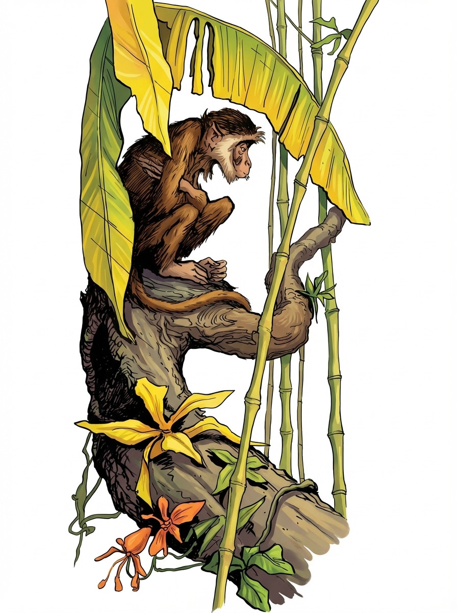 Кошка с перепугу на дерево залезла.