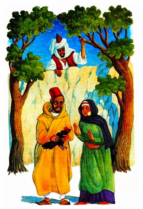 — Прежде всего я хочу рассказать тебе, в чем здесь дело. Живет эта птица в саду одного из царей в клетке невиданной красоты. Сделана клетка из золота и подвешена на дереве на шнуре, украшенном драгоценными камнями.