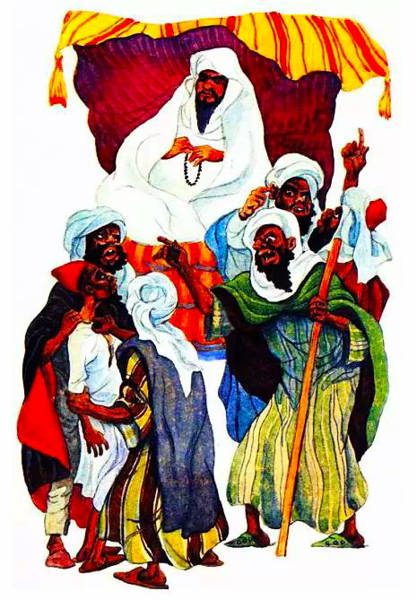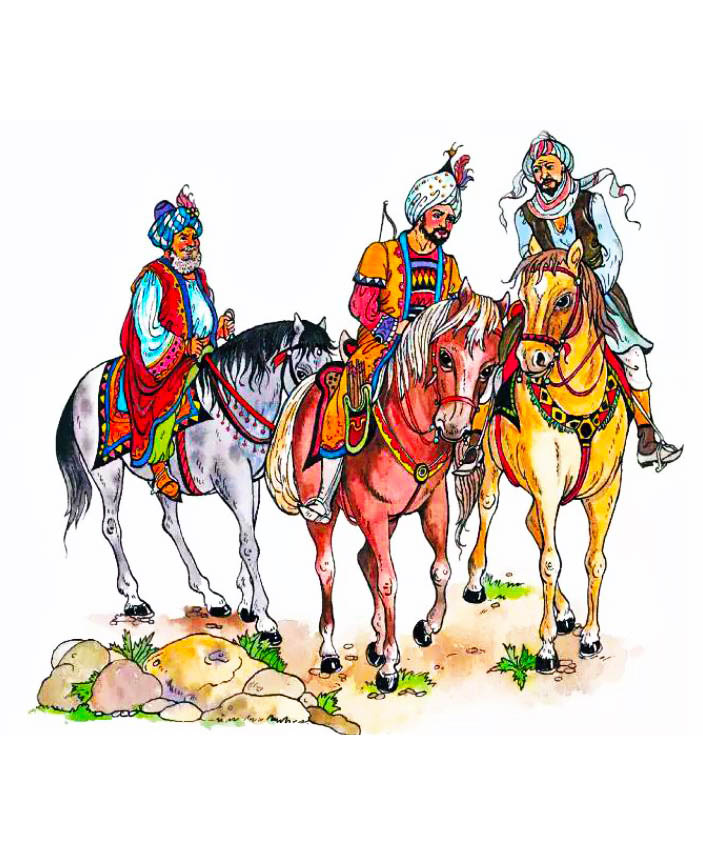 — А теперь дело за тобой, господин мой, входи в конюшню! Там стоит конь. Подойди к нему и не бойся стражников — все они спят. Около коня ты увидишь повешенное на стене богатое седло, отделанное золотом и драгоценными камнями. Но не смей брать его! Если дотронешься до него — проснутся стражники, схватят тебя и отведут к царю.