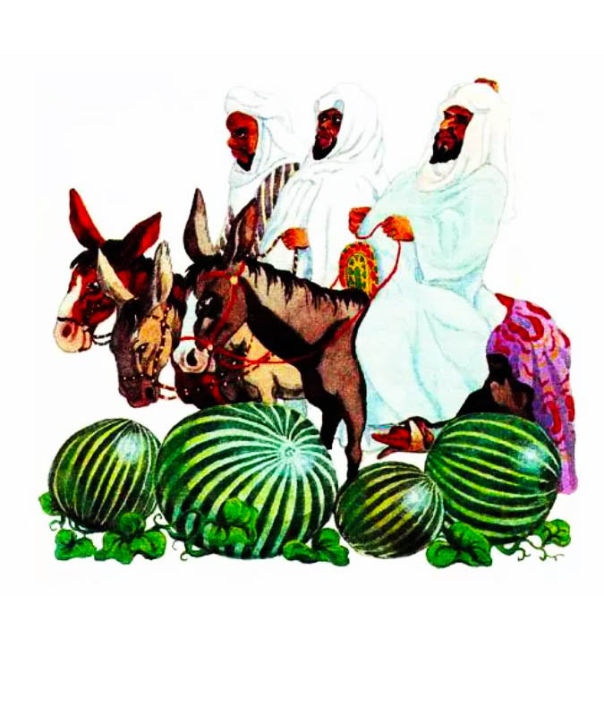 — Я слышал, о благородный повелитель, что у тебя есть три сына, прекрасных, как природа в цвету, храбрых, как львы с длинной гривой, и мудрых, как зеркало, которое отражает мысли, когда они чисты. Я был бы счастлив познакомиться с ними. Слава об их достоинствах дошла до дворца моего отца, султана Сиди Бен Зеди.