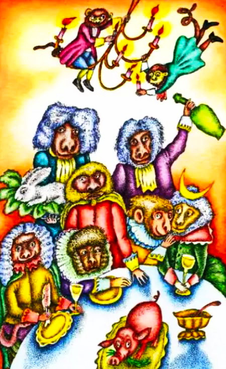 Выпили они чаю и двинулись в путь. Идут, идут, вдруг возник перед ними роскошный дворец.