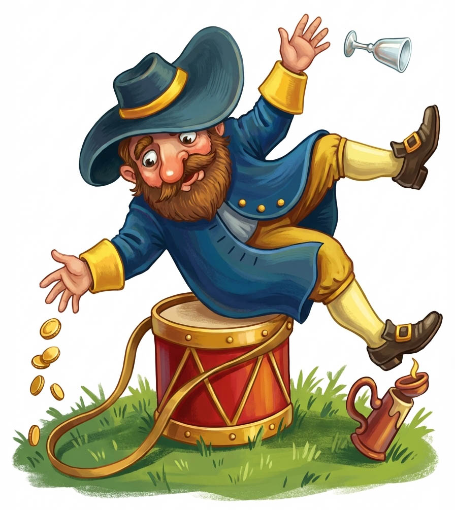 Напали на пастухов разбойники. Испугались пастухи, убежали, а барабан бросили. Уселись разбойники под деревом и давай добычу делить.