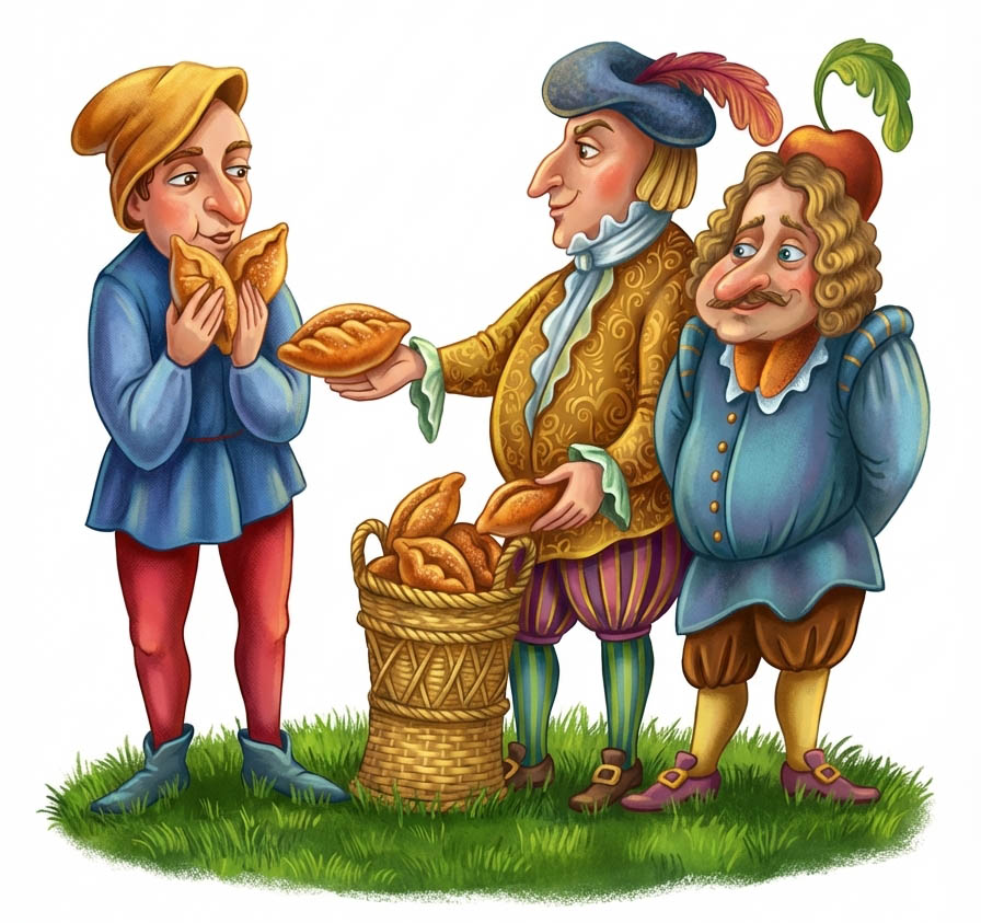 Пока он стоял да раздумывал, идут мимо два сеньора. Увидели они крестьянина, как он на пироги уставился, и спрашивают: