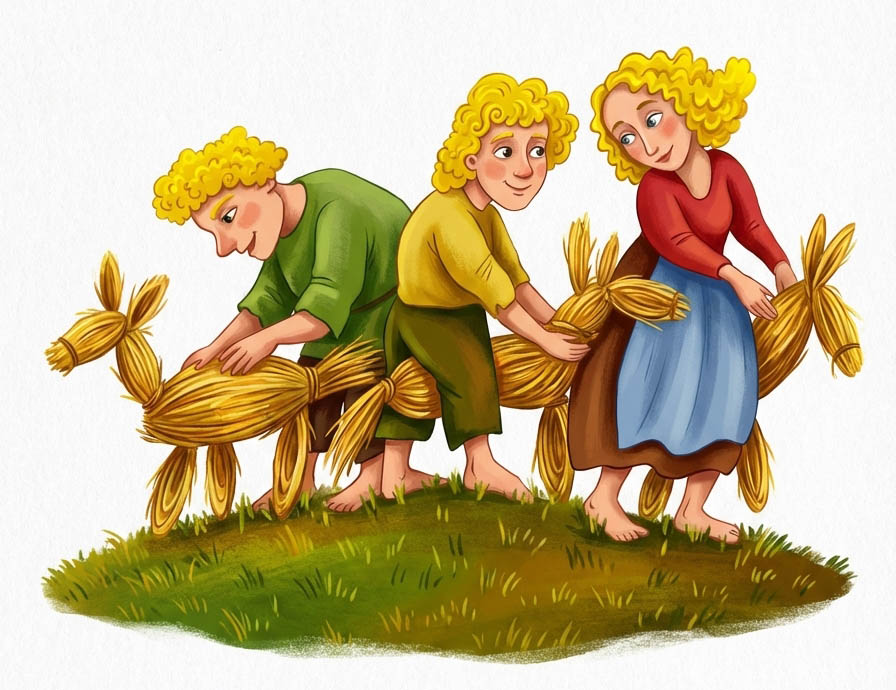 Шли годы, детки росли здоровые да весёлые, огородника с женой за отца-мать почитали. Огородник бедный был, не мог купить настоящих игрушек и смастерил им лошадок из камыша.