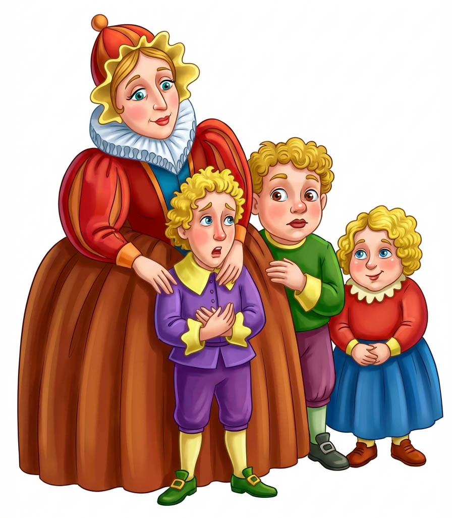 Приготовила она три великолепных королевских платья для своих детей. Оделась, как принцесса, села вместе с детьми в карету и поехала ко дворцу короля. Показался свадебный кортеж, и Катерина говорит детям:
