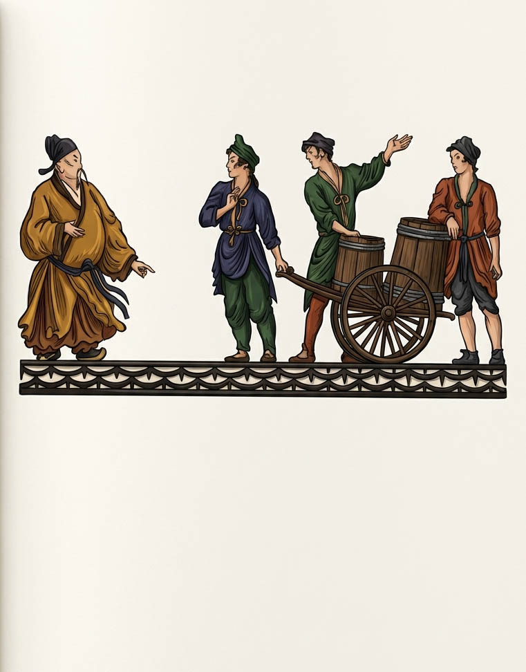 У торговца кунжутным маслом, Цзяна, была очень бережливая жена. Каждый раз, когда её муж уходил на базар, она потихоньку отливала немного масла из бочонка в глиняный кувшин, а кувшин прятала в погреб.