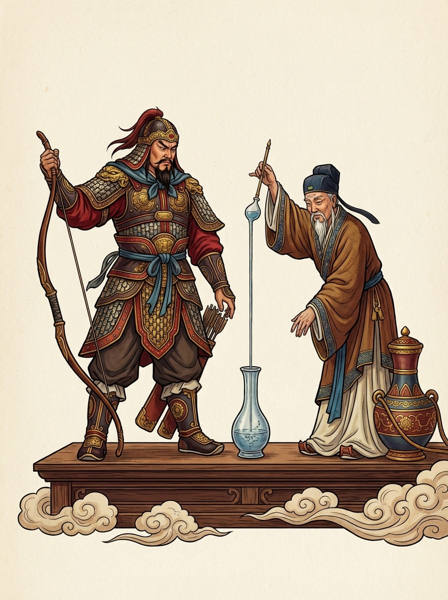 Когда-то у подножия большой горы жили два брата. Старший женился, и они решили поделить наследство. Старший забрал всё себе. Младшему достались только мотыга и соломенная накидка.