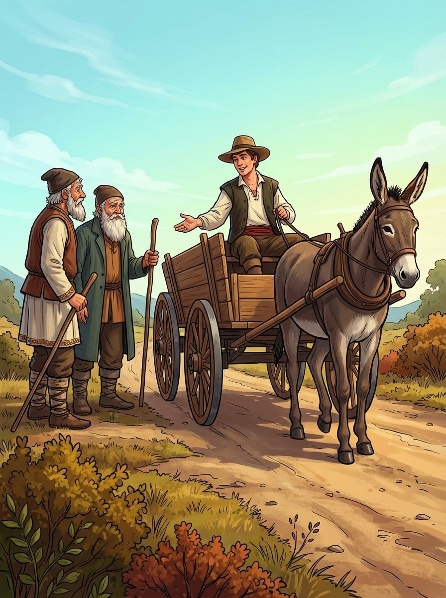 Давно-давно это случилось — ещё в те времена, когда столетние дубы были раскидисты и могучи, словно былинки в поле, а горы высоки, как кочки на болоте; когда волки овец пасли, а куры в поднебесье летали. Может, тогда это случилось, может, чуть пораньше или чуть попозже, а может, и вовсе такого не бывало.