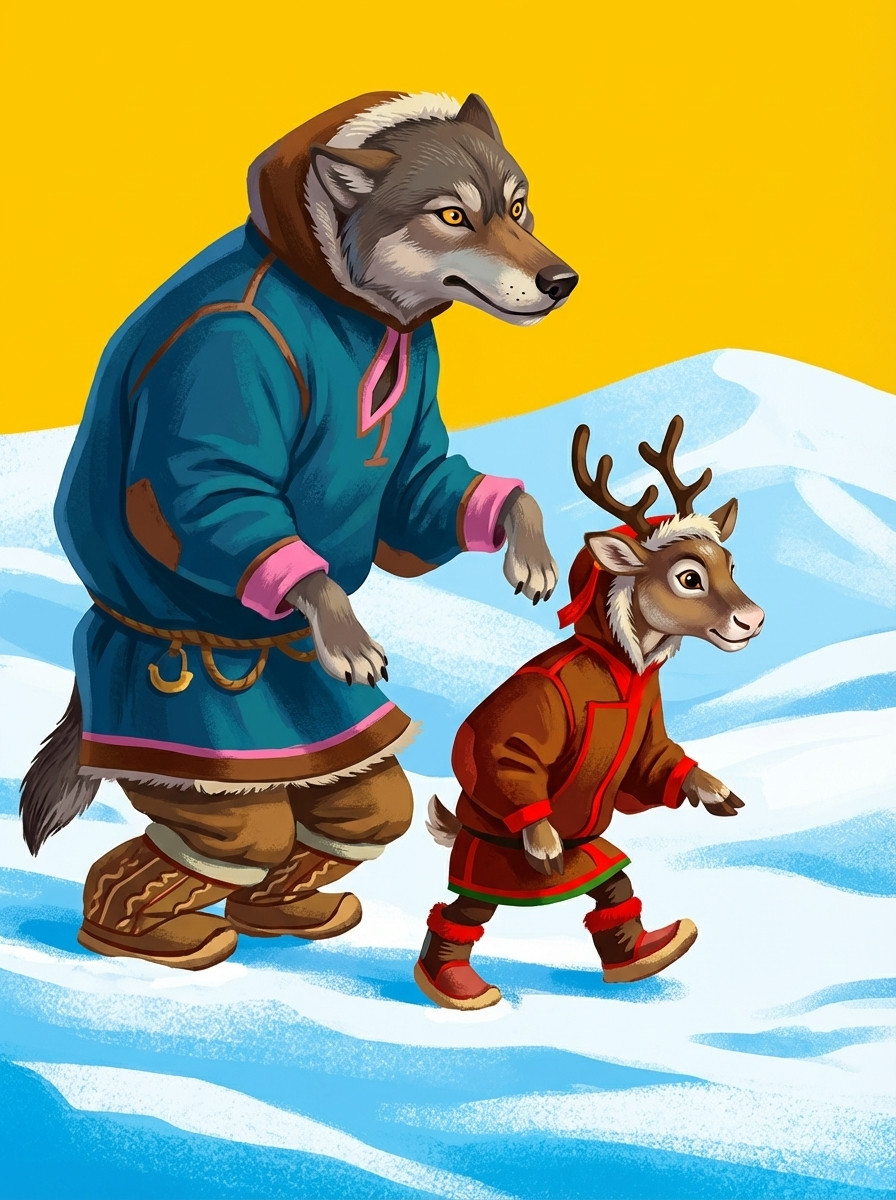 А старая ворона зашла в чум. Там, в углу, лежит рыбка, тяжело дышит. Чешуя от жира блестит. «Вкусная!» — думает ворона, а сама спрашивает: