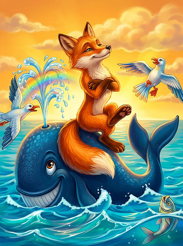 Плыла лиса, плыла, а берега все нет. На самую середину моря заплыла. И не знает лиса, куда ей теперь плыть.