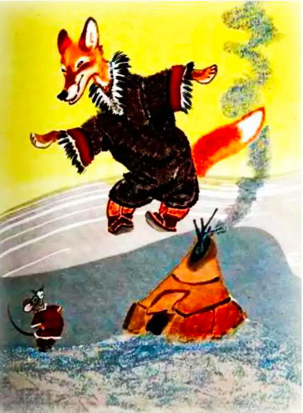 Сказал так и убежал. Шёл-шёл, в тундре очутился. Хорошо там, цветов много, солнце греет. Возле норки евражка сидит, передние лапки свесила, на хвостик опирается, свистит, как песню поёт.