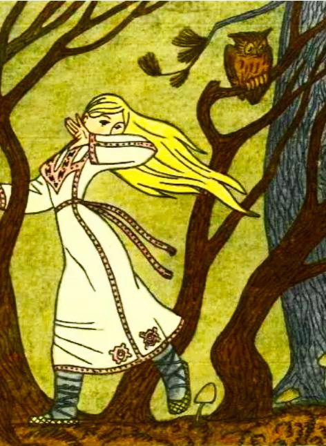 Пошёл Пятань в лес. А в лесу-то темно. Чем дальше, тем страшней. Звери воют, вороны каркают.