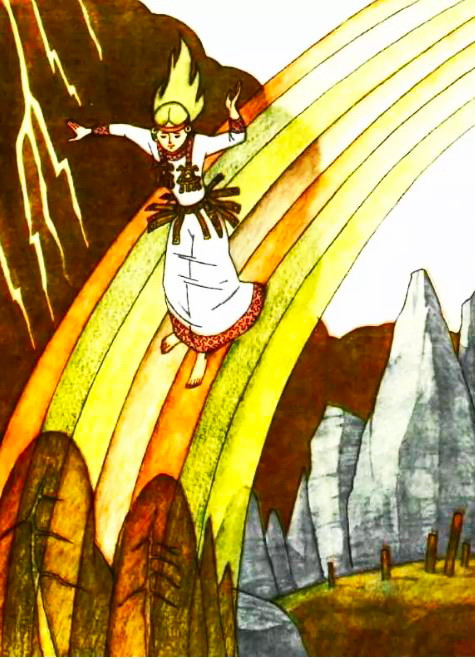 Показала она Уняны, куда ему лететь. Взвился он и полетел дальше. Долго летел.