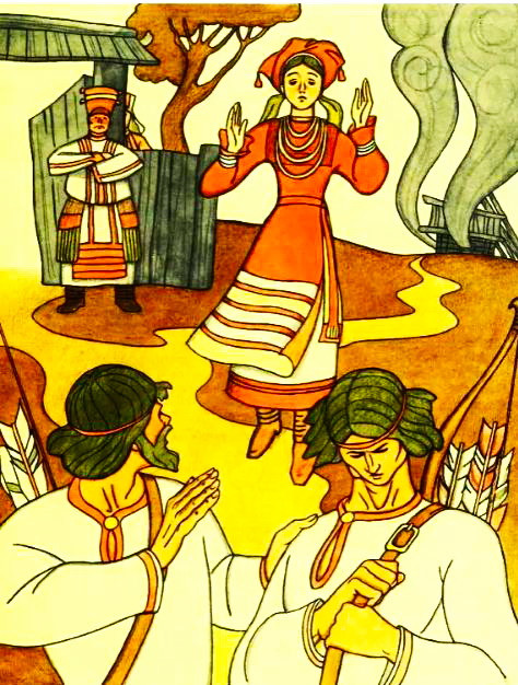 — Отец! Мать! — кричит. — Я нашел себе невесту! Солнце Золотое — Нежный Мотылек — Прекрасная Юкейден ее зовут. Никого в жены не возьму, только ее возьму. Пойдет за меня — возьму, и не пойдет за меня — все равно возьму. Снаряжайте скорее людей, посылайте сватов, не то разорвется мое сердце.