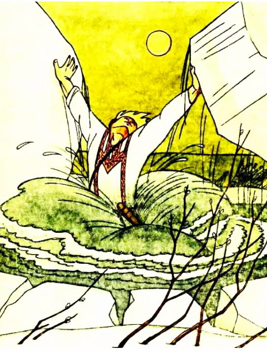 Потащили они нарты прямо в море. Хотел Кутха соскочить, да не успел. Нырнули горбуши в воду, а вместе с ними и Кутха с нартами.