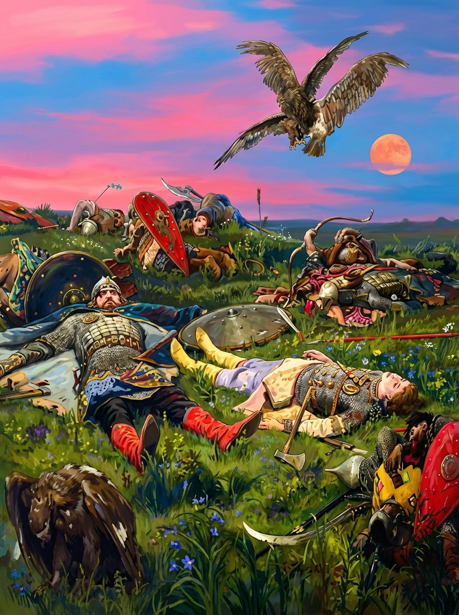 Тут налетели пчелы тучей и давай жалить волков в нос, в глаза, в язык. Взвыли жалобно волки и, чуя гибель, бросились бежать туда, откуда пришли. Бежали и на каждом шагу лапами в норы тушканчиков попадали, чуть все ноги не обломали.