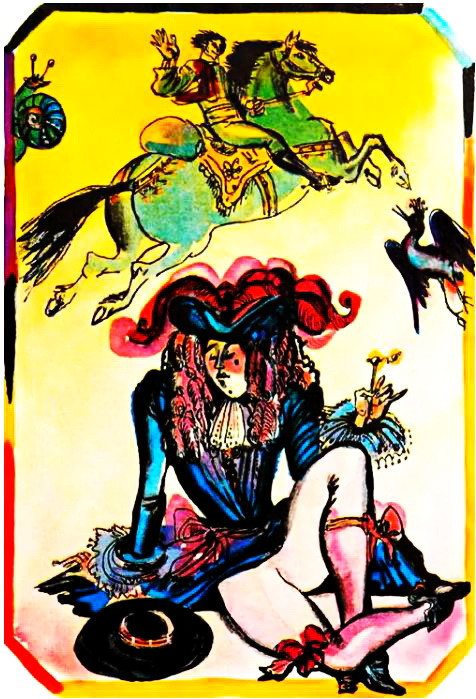 — Ку-ка-ре-ку!— закричал петух и вспорхнул на спину ишаку.— Стой, трус, ты надеешься на крепкие свои ноги!
