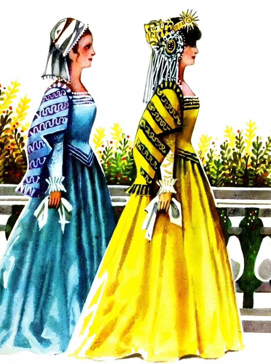 Обрадовался младший брат, сказал жене, чтобы она купила циновки с красной каймою и расстелила их по дороге, а сам купил золотой краски и позолотил ворота.