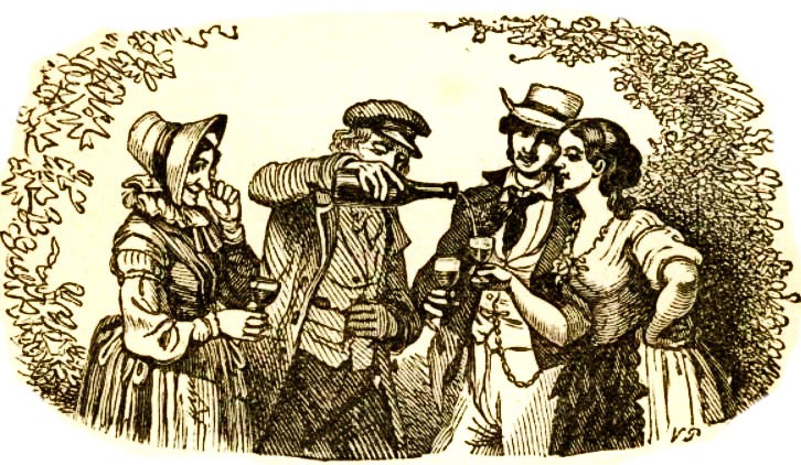Молодые люди пошли бродить по лесу. О чем они беседовали? Да, вот этого бутылка не слыхала: она ведь оставалась в корзине и успела даже соскучиться, стоя там. Но наконец ее вытащили, и она сразу увидала, что дела успели за это время принять самый веселый оборот: глаза у всех так и смеялись, дочка скорняка улыбалась, но говорила как-то меньше прежнего, щечки же ее так и цвели розами.