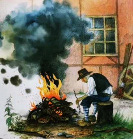 Пришел слуга и изрубил елку в куски — вышла целая связка растопок. Как славно запылали они под большим котлом! Дерево глубоко-глубоко вздыхало, и эти вздохи были похожи на слабые выстрелы. Прибежали дети, уселись перед огнем и встречали каждый выстрел веселым «пиф! паф!». А ель, испуская тяжелые вздохи, вспоминала ясные летние дни и звездные зимние ночи в лесу, веселый сочельник и сказку про Клумпе-Думпе, единственную слышанную ею сказку!.. Так она вся и сгорела.