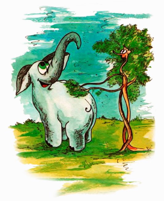 И вот в одно прекрасное утро можжевельник услышал — топ, т о п, ТОП, все громче, громче и ГРОМЧЕ! И наконец через гребень холма перешагнул СЛОН по имени НОЛС.