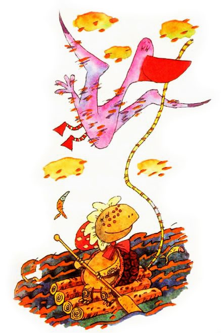 Увы, они были слишком далеко от дома, а летать Розалинда не умела. Пришлось им построить плот и плыть к дому по морю. Сквозь бурю и ночь! Оливия привязала к мачте веревку и тянула плот против ветра. А черепаха рулила веслом и пела веселые песенки, чтобы подбодрить себя и Оливию.
