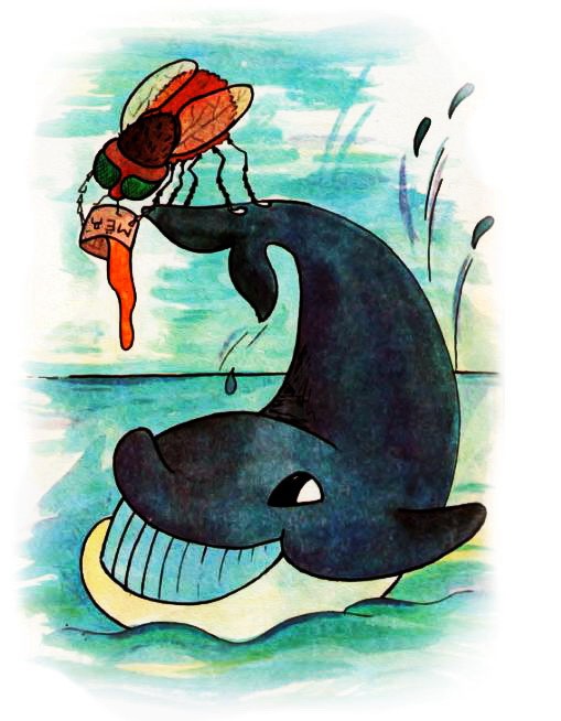 Когда Ззззззз вернулась с прогулки, Ники уже совсем проснулся, и они стали играть в любимую игру Ззззззз. Ззззззз садилась киту на нос, Ники пускал фонтан, и Ззззззз взлетала в воздух.
