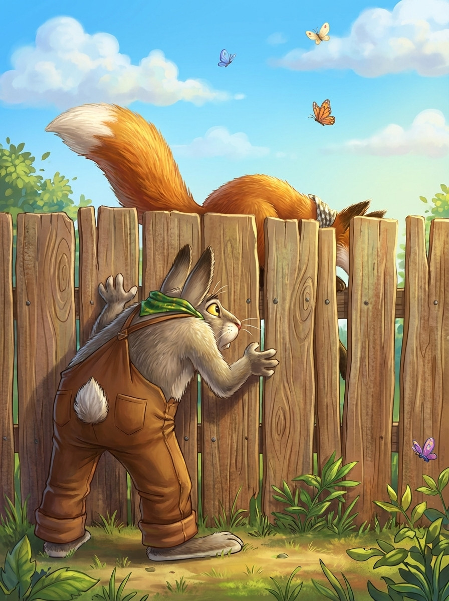 Медведь помогал Матушке Мидоус таскать дрова, Лис смотрел за огнем. Волк собак отгонял, Кролик тарелки смазывал маслом, чтобы леденцы к ним не пристали. А Братец Черепаха — тот вскарабкался на кресло и обещал присматривать, чтобы патока не убежала через край.
