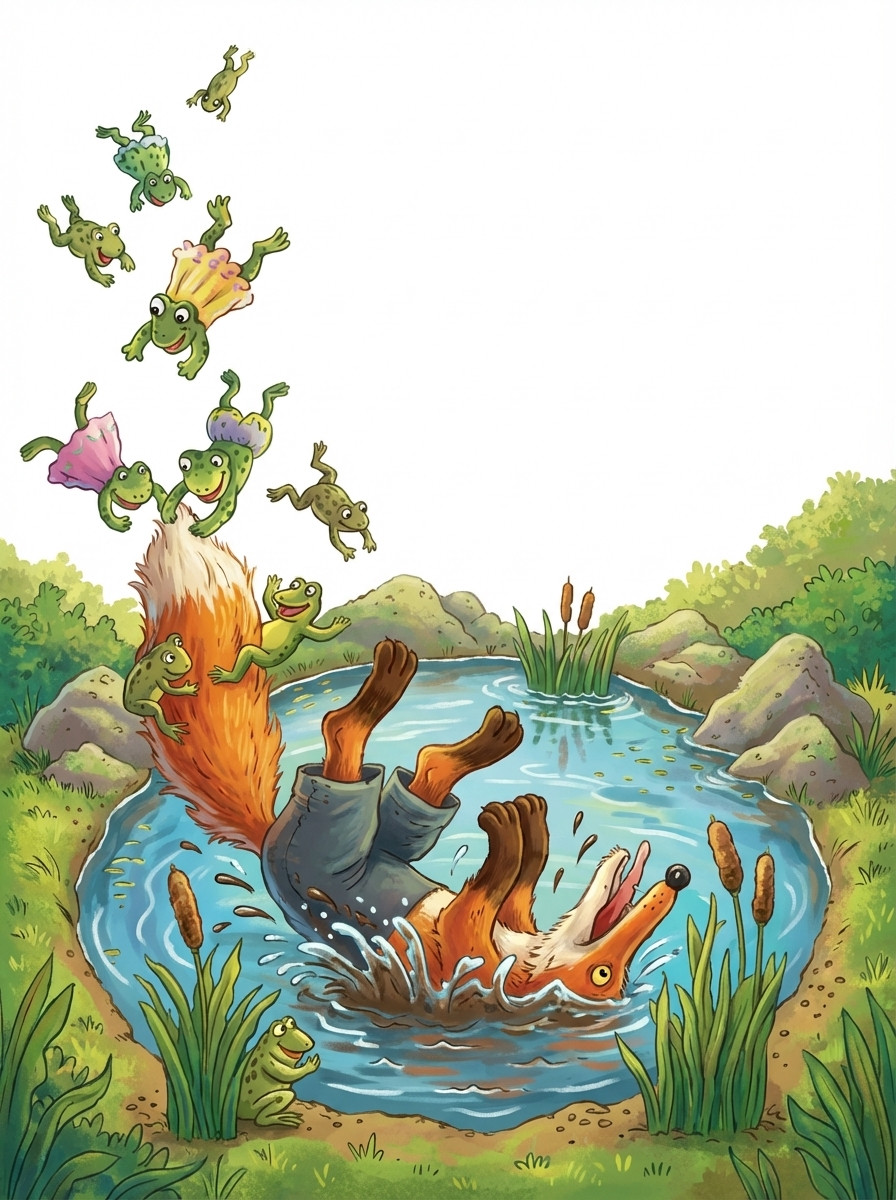 Братец Черепаха и всего-то был с ладонь, так что очень смешно было слушать, как он хвалится, что перетянет Братца Медведя. И все отправились к пруду. Братец Черепаха выбрал местечко по вкусу, взял один конец верёвки, а другой протянул Медведю.