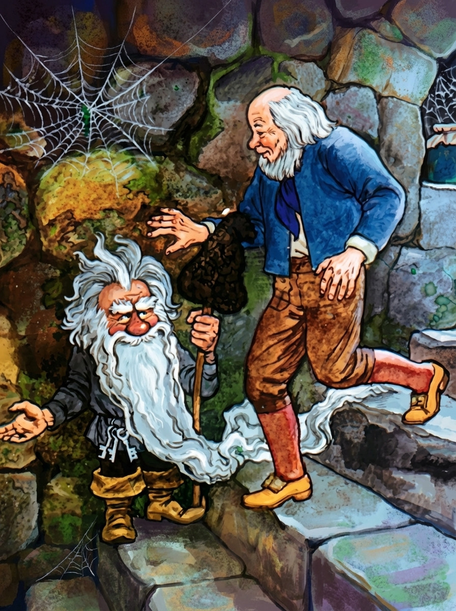 Король хотел наградить старую женщину золотом, а королева просила ее остаться жить во дворце, но старушка от всего отказалась.