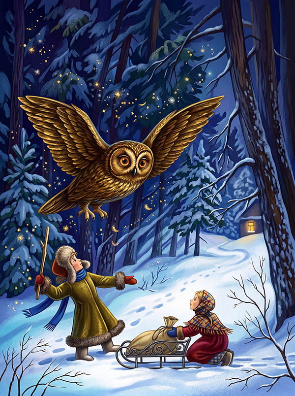 И вдруг вдалеке мелькнул огонек. Из последних сил Адальмина побежала в ту сторону и скоро увидела между деревьями маленькую хижину. Адальмина робко постучала в дверь. На крыльцо вышла старушка, хозяйка хижины.