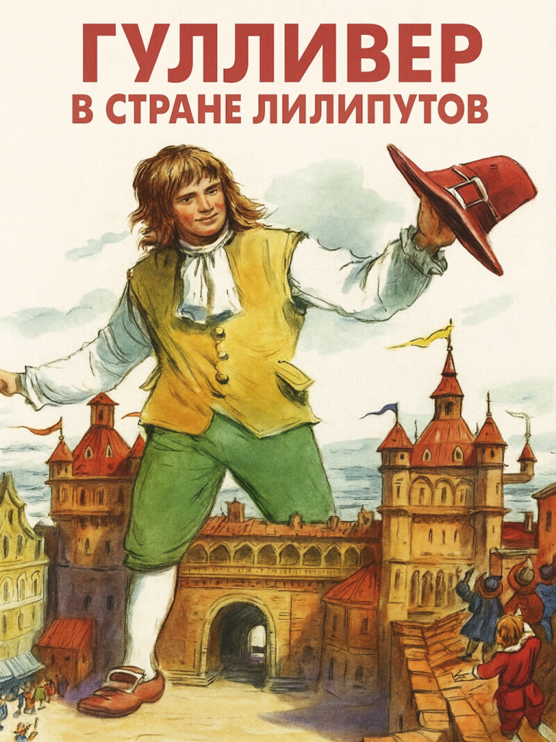 История про путешественника Гулливера, который плавал хирургом на корабле. Однажды их корабль потерпел бедствие и Гулливер оказался в стране с маленькими человечками.