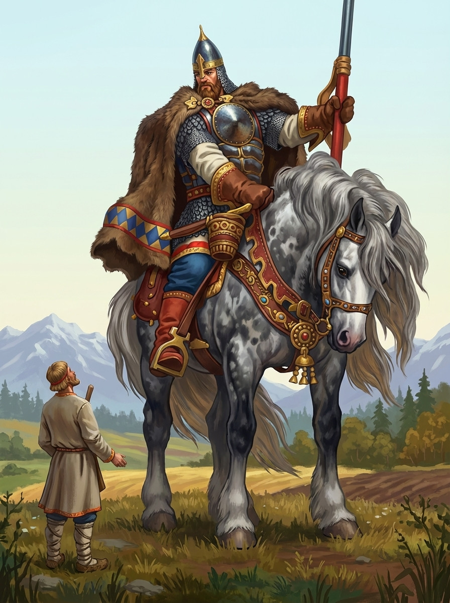 Былина о том, как русский богатырь Иван сразился с черным великаном от печенегов. Войско князя Владимира и войско печенегов сошлись, в середине сделали чистое место, где и сразились два богатыря...