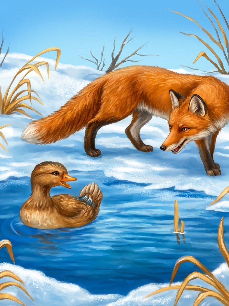 Сказка про уточку по имени Серая Шейка. Однажды лиса поранила ей крыло, и птичка не могла полететь со своей семьей в теплые края. Серая Шейка забрела в лес, где познакомилась с зайчиком. Он предупредил ее о лисе, которая охотилась на уточку и ждала, пока полынья окончательно замерзнет. Как-то в лесу появился охотник и, увидев уточку, забрал ее домой для своих внуков…