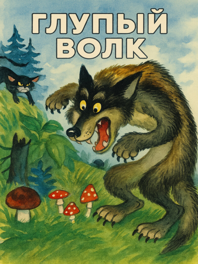 Сказка про глупого волка, который не мог поймать себе добычу. Он ходил за советом ко льву. Да только волк все равно остался голодным, так как его все перехитрили.