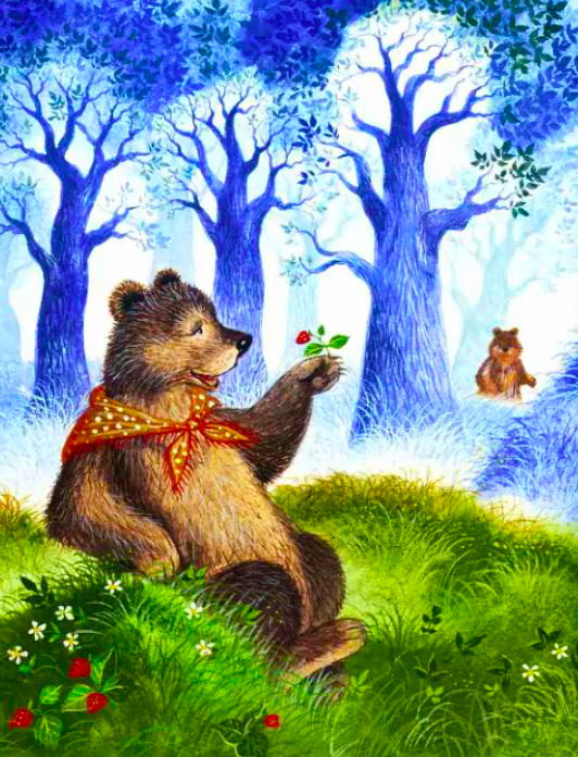 Задумался однажды Медведь: что в жизни самое главное, без чего нельзя прожить. Спросил у Медведицы, она ответила: "В еде". Спрашивал он и у других зверей, и у знакомого мужика.