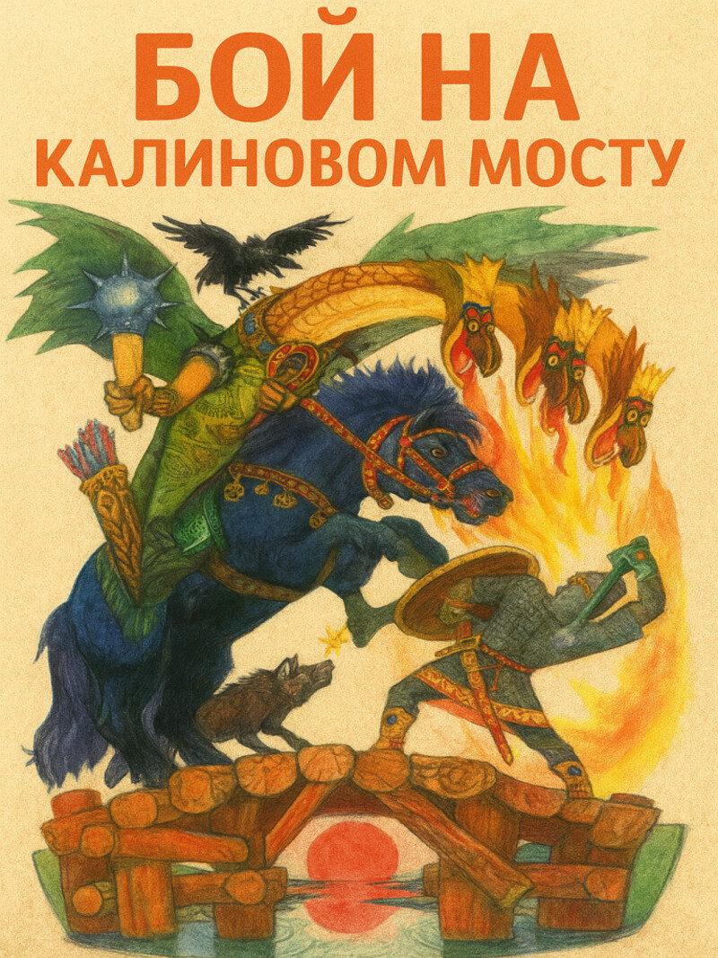 Бой на Калиновом мосту – сказка о подвиге трех русских богатырей. Совпадает по сюжету со сказкой Иван-крестьянский сын и чудо-юдо. В настоящем сюжете, помимо Ивана-крестьянского сына, появляются еще два русских богатыря – Иван-царевич и Иван Попович. Собрались они вместе и пошли против трех чудовищных змеев биться на Калинов мост...