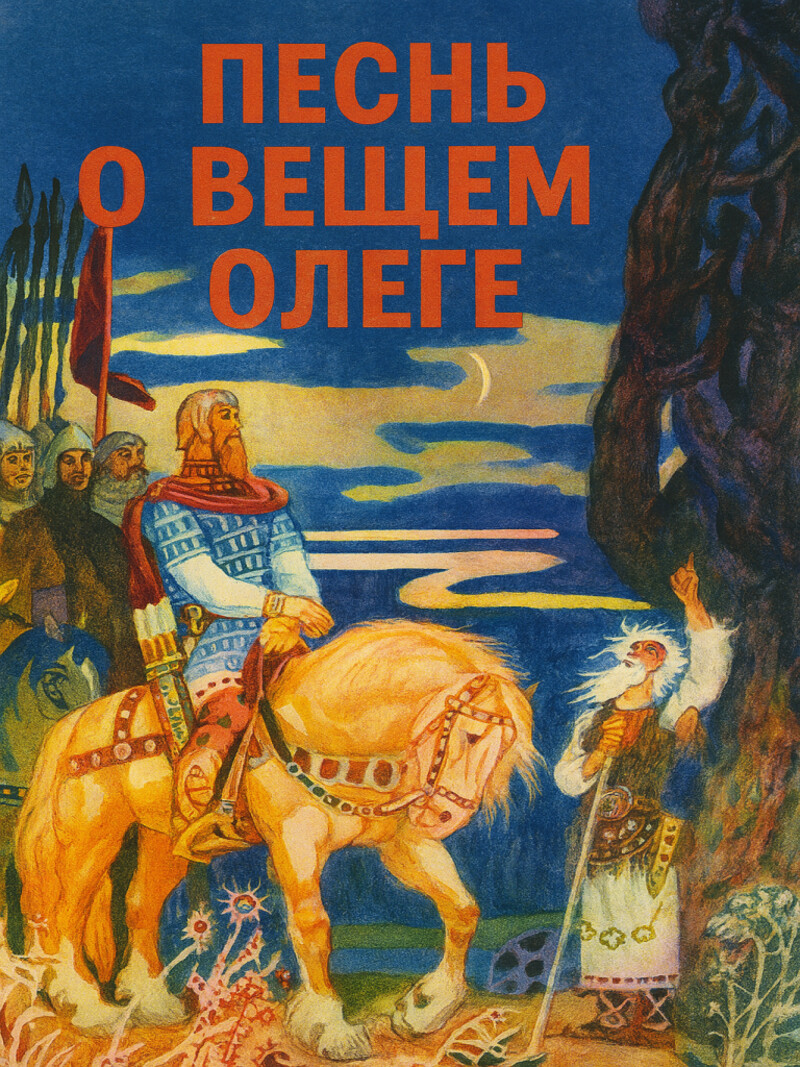 Сказ о князе Олеге, который собирается в военный поход отомстить хазарам за набеги и разорения. По дороге князю встречается старец, предсказывает славные победы и смерть от коня. Поверив в предсказание, Олег прощается с конем. Вернувших из похода с победами, Олег узнает о смерти коня и идет на его могилу. Там он наступает на череп коня, из которого выползает ядовитая змея и смертельно жалит Олега. Пророчество сбывается!