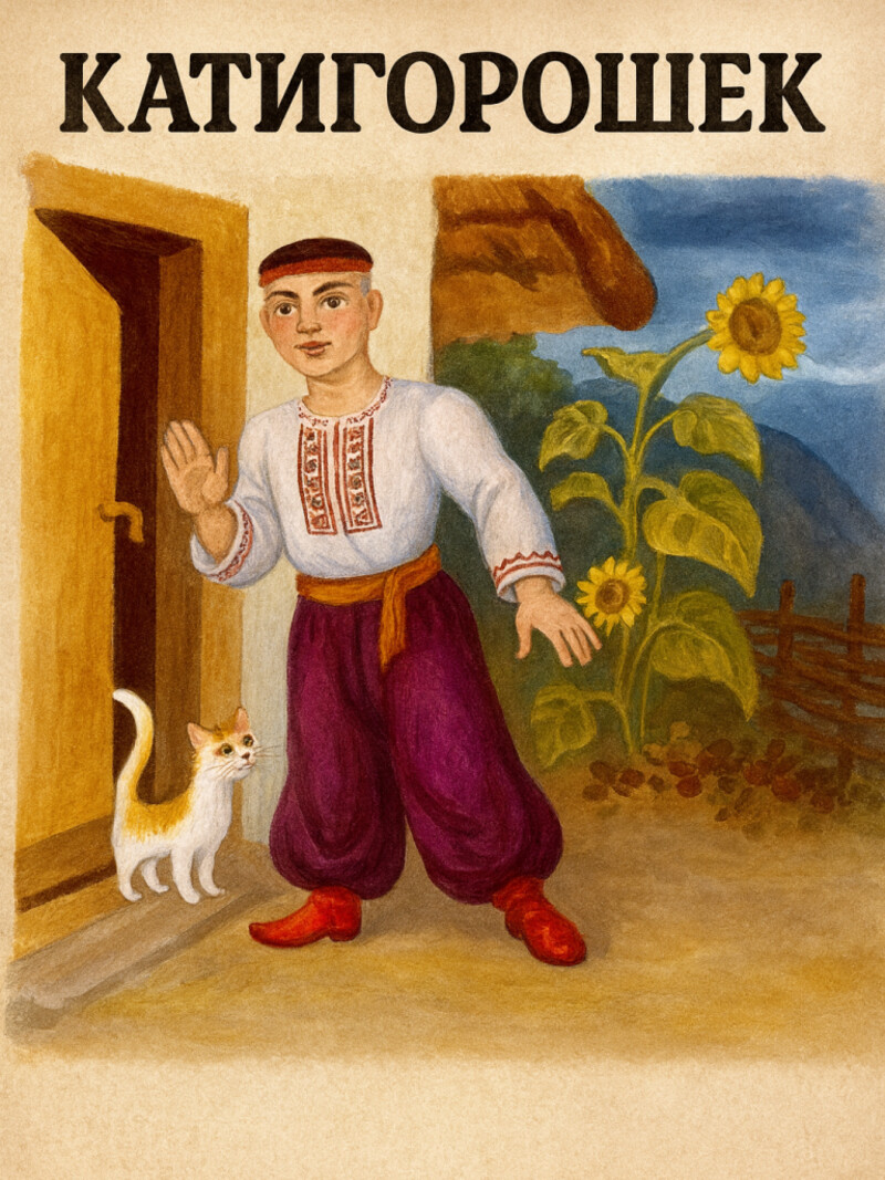 Сказка про семью, в которой было шестеро сыновей и одна дочка. Всех их Змей заточил в своем дворце. У отца и матери родился еще один сын-богатырь Катигорошек, который спас своих братьев и сестру. Потом он пошел странствовать по свету счастья искать, где у него было много разных приключений.