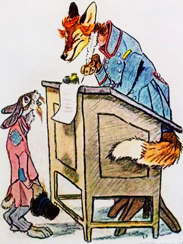Сказка про зайца, который так боялся ослушаться волка, что готов был терпеливо ждать, пока тот его не съест. И волк с волчихой откровенно потешались над таким поведением зайца...